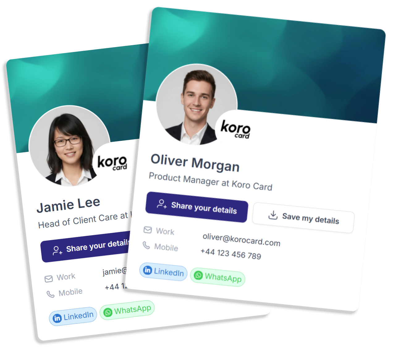 Find out how Koro Card can help elevate your business. With a digital business card designed for the modern world, business owners like yourself can leave a lasting impression that showcases your brand in the best light, and makes potential clients want to connect with you.
