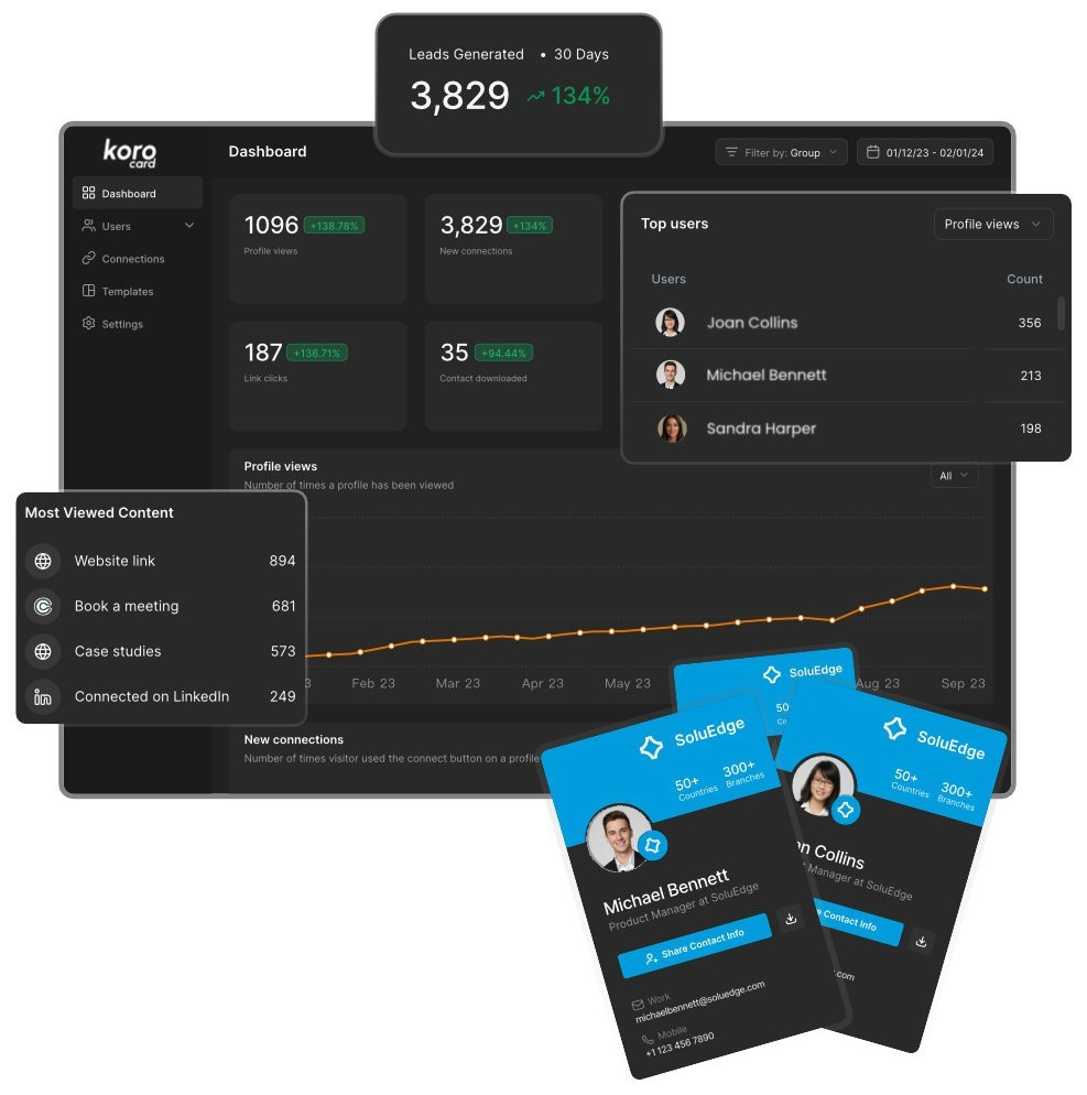 Koro Card is a fully-featured digital business card platform suitable for individuals, teams, and people with multiple projects they want to manage under one account.